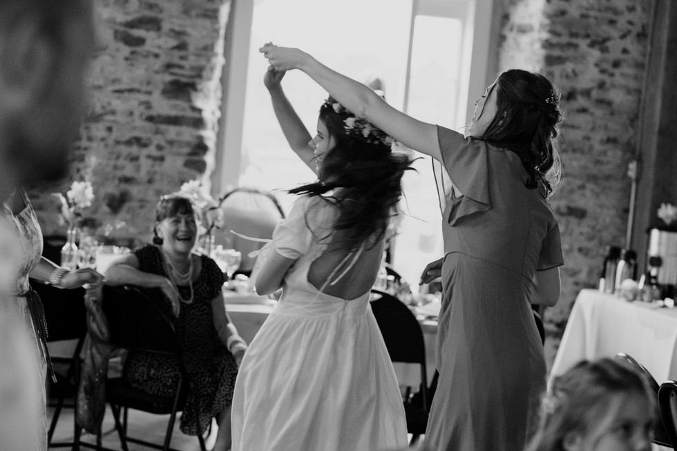 Upstairs at the Mill, the reception space was warm and full of natural light. With soaring ceilings, original beams, and carefully chosen decor, the room had a cozy-yet-elevated feel. Family and friends — with no hired planner — came together to decorate the space over the weekend, and they did an incredible job. Every table felt intentional and full of heart.
